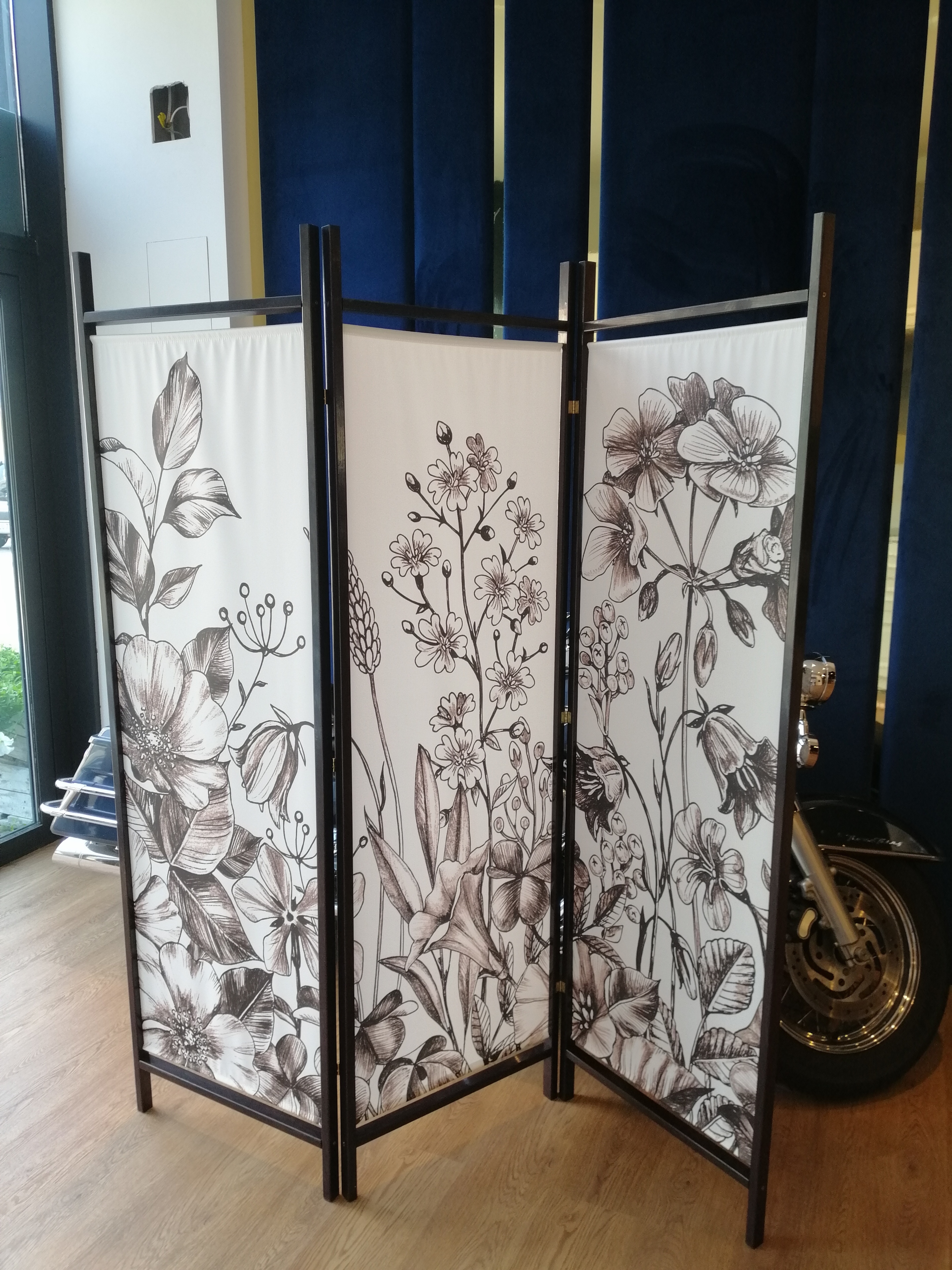 Nadruk na tkaninie wykonany jest tylko po jednej stronie parawanu!!!